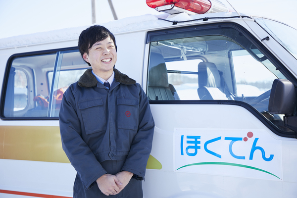 配電課の仕事は、電力供給の最前線でライフラインを支えることにつきる。実際に利用者のもとへ足を運び、顔を合わせながら仕事を進めていく。「一番お客さまの目につくのが配電課。お客さまにとっては北海道電力=僕たちなんです」と誇らしげに付け加える。